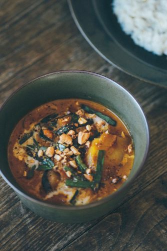 たっぷりのミントが入ったトマトベースのチキンカリー。